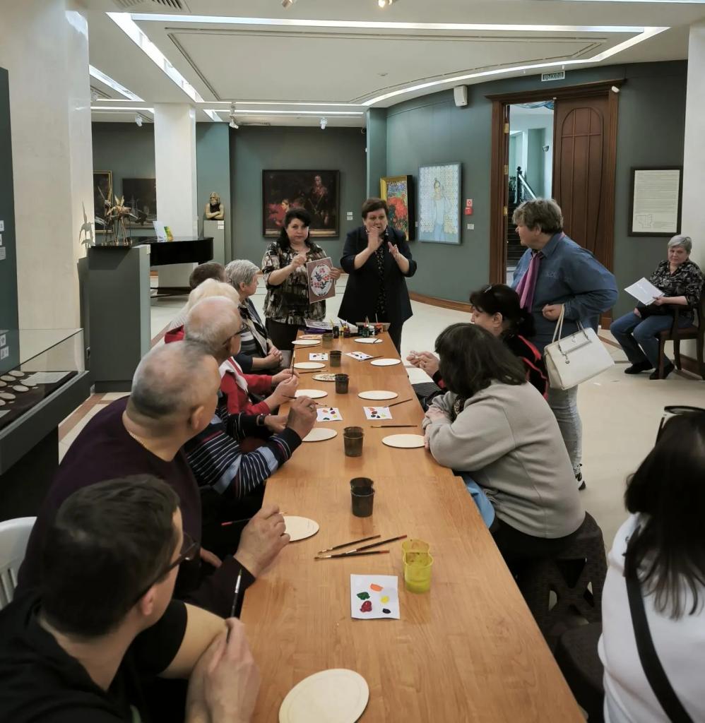 В выходной день глухие губкинцы со своими семьями могли прикоснуться к искусству в Белгородском государственном художественном музее. Для них был проведен мастер-класс по рисованию акрилом, а также проведена экскурсия по постоянным и временным экспозициям музея. Переводила для наших глухих председатель Губкинского местного отделения Зоя Московых.